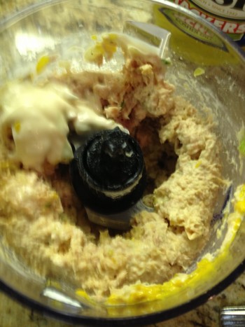 Give this a quick pulse, but not for too long. Last time I ended up with tuna pâté. Not really a nice texture for tuna sandwiches.