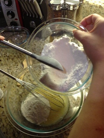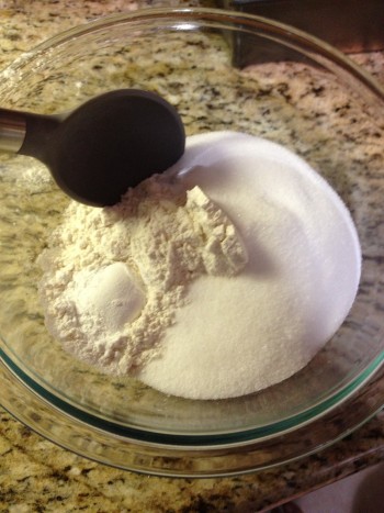 This recipe I found at AllRecipes.com. It’s a simple recipe to follow, and it only took 10 minutes to prep. One thing I recommend changing for next time is the amount of blueberries. The recipe calls for 1 1/2 cups of berries. I recommend 3/4 cup of berries instead. Too many berries, not enough cake, but either way, it still turned out yummy!