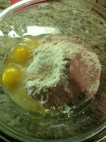 In a large bowl mix the cake mix with two eggs, melted butter and oil…