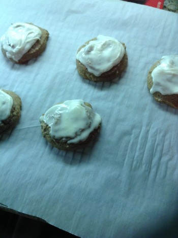 Let the cookies cool for 15 to 20 minutes, then frost with cream cheese frosting…