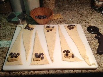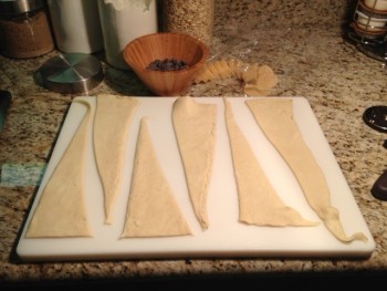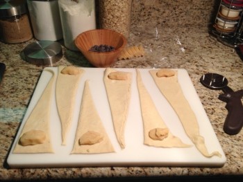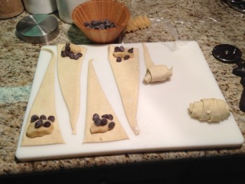 Place all of the rolled pastries on to a pan lined with parchment paper.