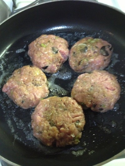 I love to cook with turkey. Yes, it’s low in fat but it doesn’t have to lack in flavor. I mixed in a half packet of onion dip into the turkey meat giving these burgers a nice season with chopped scallions and some black olives. Mmmmmh, so good!